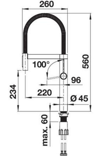 Высокий излив и гибкий металлический шланг обеспечивают оптимальный диапазон движений