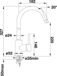 Требуется отверстие под смеситель Ø 35 мм