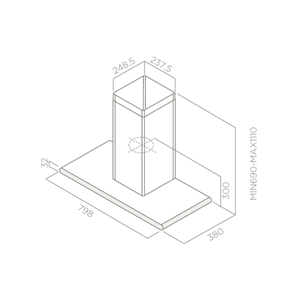 Каминная вытяжка 80 см | Производительность 1000 м³/ч + сенсорное управление